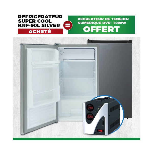 Achetez 1 réfrigérateur SUPER COOL KRF-90L SILVER et recevez un régulateur de tension numérique DVR-1000W GRATUIT 🎁