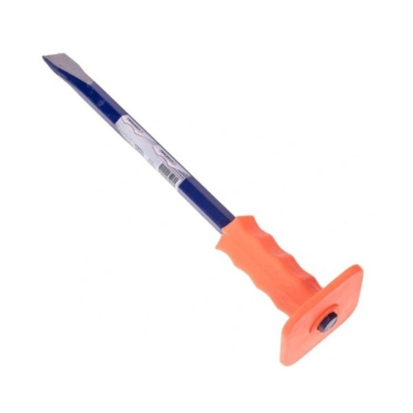 Burin de Maçon Plat 25 x 300mm. Burin Professionnel acier 40 CR W avec pare-coups/protection de mains BURIN DE MACON PLAT ET LARGE - Burin de macon plat professionnel en Acier Cr-V forgé robuste avec poignée ergonomique et protection des mains pour une utilisation sans souci et sécurisée. Des rainures sur la poignée empêchent le glissement!