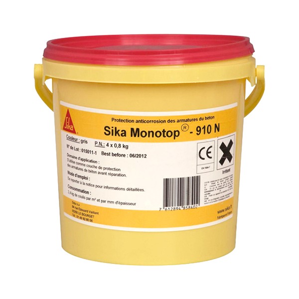 Le revêtement anticorrosion Sika Monotop-910 N est un enduit monocomposant lié au ciment. Il est utilisé comme couche de protection des fers d'armatures et pour la réparation de béton armé avec corrosion des fers d'armature. Il sert aussi à reprofiler les dégâts dans le béton avec un mortier de reprofilage de Sika.