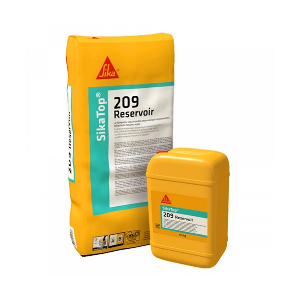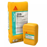 SikaTop-209 est un mortier bi-composant, à base d'une résine de synthèse (composant A en bidon de 9,5 kg) et d'un mélange de ciment et de charges spéciales (composant B en sac de 26,6 kg). Mortier imperméabilisant à base de liant hydraulique et de résines synthétiques. Idéal pour l'étanchéité souple des réservoirs d'eau potable ou non (réservoirs, réservoirs, lacs, canalisations, etc.), surélevés, enterrés ou semi-enterrés, ouverts ou fermés. Bonne adhérence sur béton, mortier, pierre et brique. Mortier facile à appliquer.