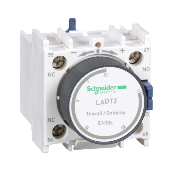 BLOC CONTACT AUXILLIAIRE TEMPORISE 1F+10 REF LADT2 - Schneider Electric propose pour compléter les fonctions de ses contacteurs TeSys, des blocs de contacts auxiliaires LADT, offrant une solution totale de commande pour les installations industrielles ou tertiaires Conçus pour s'adapter sur le dessus des contacteurs, le raccordement se faisant à l’aide de vis-étrier, et présentant deux contacts 1O + 1F Le contact auxiliaire offre, par la temporisation, une possibilité supplémentaire d'agir sur les installations de vos clients Il s'intègrera avec facilité grâce à son design étudié pour la mise en œuvre de l'architecture choisie, offrant ainsi souplesse et sureté à la conception de l'infrastructure Robuste et adaptable, la gamme TeSys répond aux attentes des infrastructures les plus exigeantes, tant en termes de puissance que de fiabilité