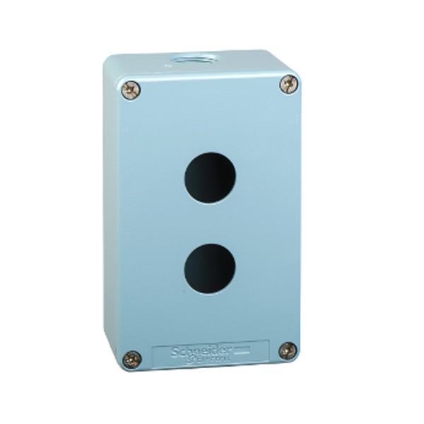 BOITIER METALLIQ. REF. XAPM2202 - Cette boîte à boutons de commande, vide, en métal moulé sous pression, Harmony XAPM dispose de 2 perçages pour 2 boutons poussoirs / 2 fonctions pour le contrôle des machines. Cette boîte à bouton de commande vide et bleue avec 2 découpes permet aux constructeurs de machines de personnaliser leurs machines. On peut facilement ajouter toutes les unités fonctionnelles de commande et de signalisation au boîtier en fonction de l'opération requise. Il est conçu pour les machines de production simples et en série, les textiles, les emballages, la manutention de petits systèmes de levage. Il fonctionne également pour le contrôle des portes de garage, les volets roulants, les trappes de désenfumage. Sa large gamme de températures de fonctionnement de -40 °C à 70 °C permet une polyvalence dans l'utilisation du produit.