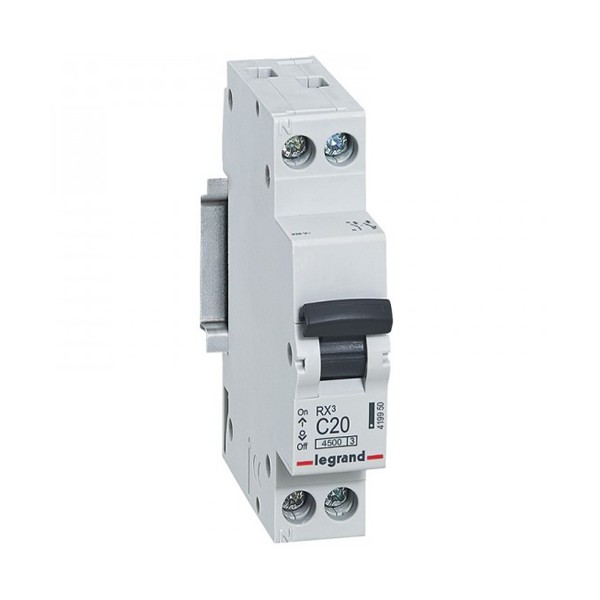 DISJ P+N 20A 4500A RX3 REF 419950 - MCB RX3 4500A 1 pole + neutral 20A curve C