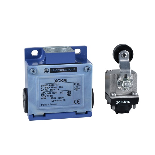 Livré complet, avec un corps en métal et un actionneur de type levier à galet plastique.