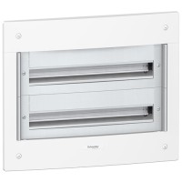 PRAGMA COF 2R24 ENCAST REF PRA22224 - Pragma - coffret encastré 2 rangées 24 modules - 125A - sans porte - blanc Principales caractéristques Gamme: Pragma Type de produit ou équipement: Boîtier Type d'extensibilité: Coffret de répartition Largeur 570 mm paroi: 610 mm extérieur: Hauteur 480 mm paroi: 510 mm extérieur: Profondeur 30 mm extérieur: 95 mm paroi: Nombre de modules 18mm par rangée: 24 Nombre de rangées horizontales: 2 Classe d'isolation électrique: Classe II, Double isolation Equipement fournis 1 x étiquette d'identification 1 x kit de marquage 1 x bornier 1 x bande d'obturateur Type de porte: Sans