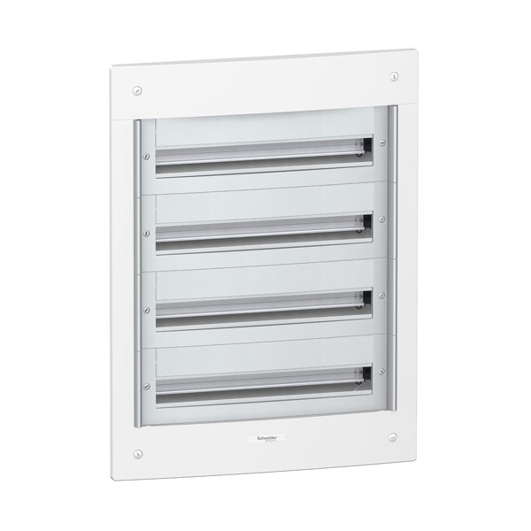 PRAGMA COF 4R24 SAILLIE REF PRA22424 Principales caractéristiques Gamma: Pragma Largeur 570 mm paroi: 610 mm extérieur: Hauteur 780 mm paroi: 810 mm extérieur: Profondeur 30 mm extérieur: 95 mm paroi: Nombre de modules 18mm par rangée: 24 Nombre de rangées horizontales: 4 Classe d'isolation électrique: Classe II, Double isolation Equipement fournis 1 x étiquette d'identification 1 x kit de marquage 1 x bornier 1 x bande d'obturateur Type de porte: Sans