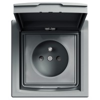 PRISE 2P+T AVEC CLAPET VOLETS ASFORA ACIER REF EPH2800362 - Prise 2P+T avec clapets et volets Acier