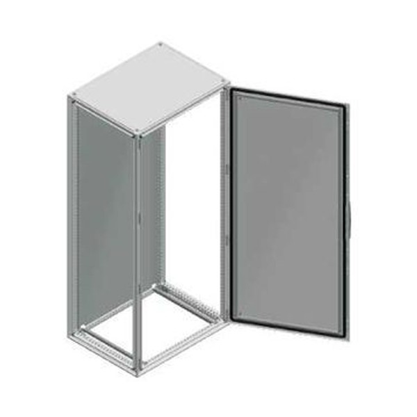 TABLEAU ELECT CELL SF 2000X600X500 REF NSYSF20650 - Cellule en acier assemblée avec porte face avant pleine sans châssis pour enveloppes Spacial SF. Produit assemblé. Vis fixés sur le panneau arrière. Sans plaque de montage. Système de fermeture à 4 points avec poignée et insert de verrouillage à double barre de 5 mm. Acier galvanisé pour châssis et montants. Degrés de protection IP 55, IK10. Couleur gris clair RAL 7035. 4 supports de plaque de montage inclus.