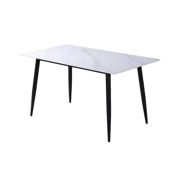 Le dessus de la table à manger droite est en pierre frittée et a un bel aspect marbré. La pierre frittée est un type de pierre populaire qui est principalement utilisé dans l'industrie de la cuisine. Il est incassable, résistant à l'eau et aux taches et facile à nettoyer. Par conséquent, la pierre frittée devient de plus en plus populaire dans la conception de meubles. La pierre frittée est très ferme et d'aspect naturel. La pierre frittée est un matériau naturel et ne libère aucune substance nocive dans l'environnement. Il résiste aux rayures et est incassable. Une table à manger design en pierre frittée demande peu d'entretien et est très stylée !