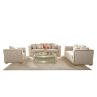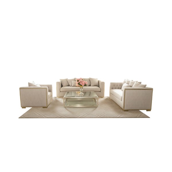 Apportez une touche de prestige à votre intérieur avec le Salon complet REF F265, une composition élégante et équilibrée qui conjugue confort, raffinement et fonctionnalité. Son tissu beige lumineux, ses finitions tuftées et ses accents dorés créent une ambiance chic et apaisante.