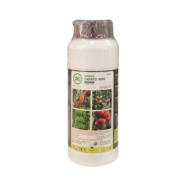 propre et sans particule, ajouter la dose recommandée de CAPSICO 50SC et remuer le mélange jusqu’à obtenir une bouillie homogène et compléter la quantité d’eau nécessaire pour votre mélange.