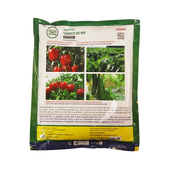 MANCO 80 WP JAUNE est un fongicide de contact sous forme de poudre mouillable (WP) qui doit être préparé avec de l’eau pour donner une bouillie applicable par pulvérisation. De la famille des Dithiocarbamates, il agit en préventif tout en offrant une très bonne protection contre de très nombreuses maladies cryptogamiques des cultures maraichères tel que la tomate, le poivron, l’aubergine, le concombre, etc.
